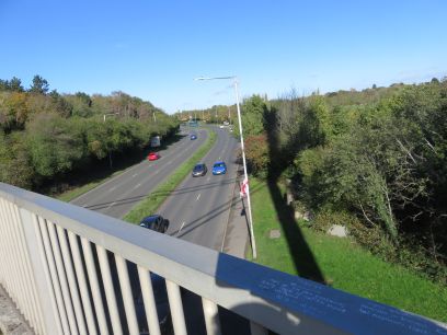 After passing alongside the golf course and then the club house the magnificent bridge over the A408 is crossed.