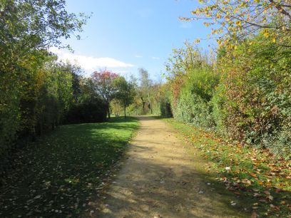 It opens to a large park area later on with a BMX track and skate board park alongside. After leaving the park and after a short section of road woodland is entered by the Stockley Park business park.