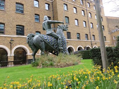Then into Devonshire Square and a sculpture of a knight of King Edgar. Further on into St Mary Axe with the large office buildings dominating.