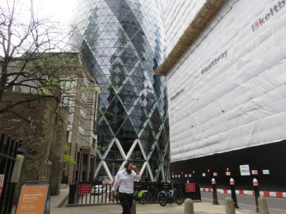 Passing the Gherkin with its huge base structure. Another mix of old and new.
