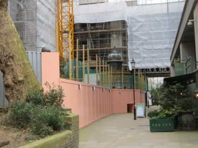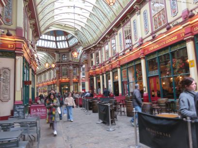 Into Undershaft and the church of St Helens. At this point the route came to a stop as the whole area is being redeveloped and is boarded off. There was no way through to the open space at St Helen's Square and it probably no longer existed. So a diversion was needed to eventually get back on route at Leadenhall Street. Into Leadenhall Market.