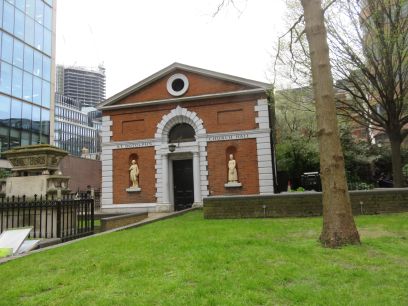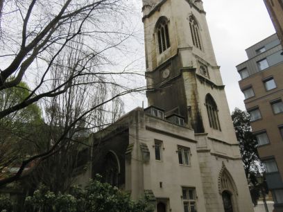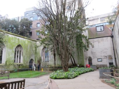Another view of the Gherkin and then into the churchyard of St Botolph-without-Bishopsgate and the former church school.
