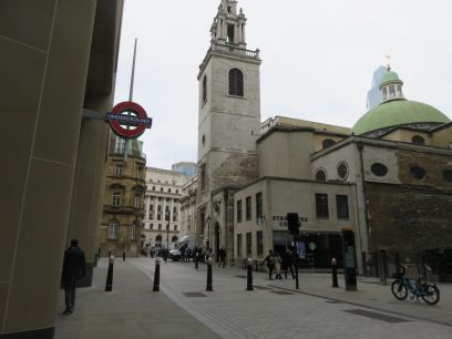 Then towards Bank station passing the Mithraem, the remains of an ancient temple dedicated to Mithras. Opposite the tube station is St Stephen Walbrook designed by Christopher Wren.