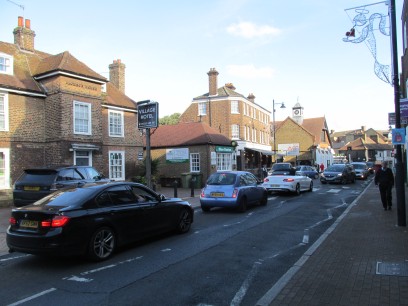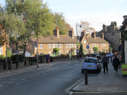 Bexley High Street has some very old houses. The low building is Styleman's Almshouses built in 1750. In the busy street most of the houses date from the 18th Century.