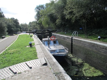 Arriving at Boston Manor tube station around 10.45 I walked the short path to Osterley Lock. There was a boater working, with some difficulty, the lock and another boat approaching. Soon after the lock the Green London Way diverts away from the canal for a while, passing through some very pleasant woodland, before joining it a bit further on.