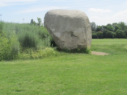 Then Mabley Green is reached, a pleasant open space with a sports centre in the middle. This has been considerably improved after the guide book was written and the instructions didn't quite agree. Star feature is the Mabley Green Boulder, one of two large lumps of Cornish granite created by artist John Frankland. They are occasionally used for training by budding mountaineers. Quite impressive if a little hidden now among the newly planted trees.