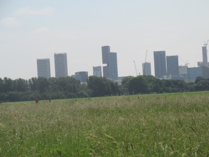 The route now goes through Middlesex Filter Beds, originally part of the large filter bed complex built in the nineteenth century to improve London's water supply. These were closed in 1969 and after laying abandoned for some years became a nature reserve in 1988. The skyscrapers near the Olympic Park tower in the distance, must investigate the strange one which seems to be missing its middle.