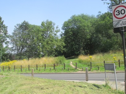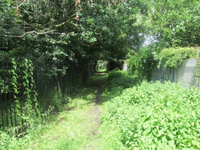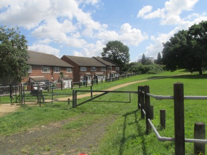 A short walk down the road and I reached the entrance to Lesnes Abbey Park. The path here leads directly to the green gate the guide book indicates if I had ducked under the fence lower down. Into countryside.