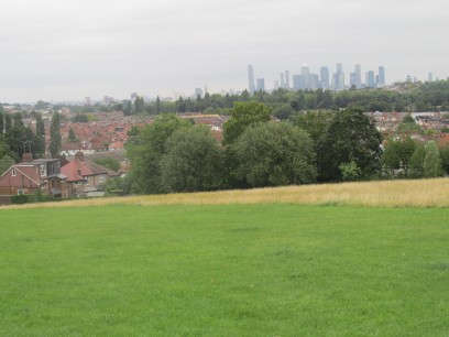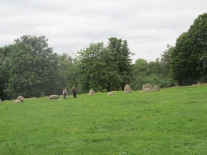 So out of Lewisham station into the bustle of the busy town centre. But following a path I was immediately in countryside again alongside the Ravensbourne. A short stretch of suburban streets then led to Hilly Fields, saved from housing development by Octavia Hill, founder of the National Trust. Here is a stone circle, set up in the millenium as London's answer to Stone Henge. First climb of the day and good views of London from the top.