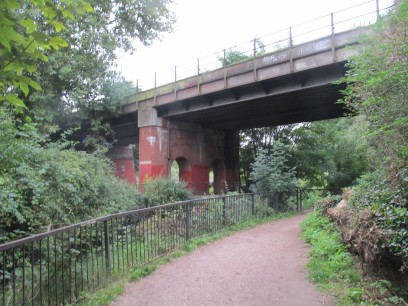 Another short stretch of the Ravensbourne through Ladywell Fields before leaving it after this railway bridge and leaving the fields a short way later.