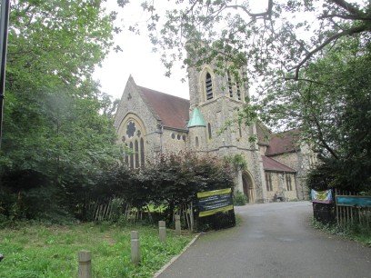 Near the bottom of the hill is a church which serves the nearby Camberwell New Cemetery. Then after steep climbs of steps at the summit is the Honor Oak which gives the hill its name. The original oak was very old but has later been replaced with a different one though I did not see it. An equally steep climb down followed to reach the pleasant Brenchley Gardens at the bottom.