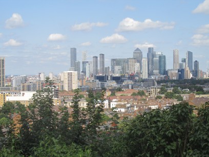 So after a pleasant walk through the park I left via a gate at the other side into what is Blackheath. I was a bit surprised how rural it was and was hardly expecting that long flight of steps - 'descending the steps' in the book downplays it somewhat. After a small stretch of suburban streets it was back to these wooded little lanes and I soon reached The Point. This area has a strange history with many caverns below the hill and rumours of a Victorian drinking den within them. Access has long been closed off and nobody seems to know exactly where it was even if the rumours are true. However I took advantage of the tip to climb the steps the book mentioned in passing - another long flight of steps - and was rewarded with a superb view of the capital from the lookout at the top, where there is quite an extensive area of parkland missed by the Green London Way.