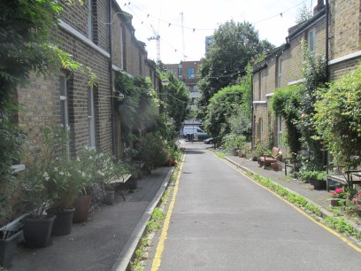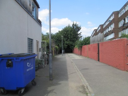 After here the walk now meets heavy traffic on the A2 which had to be crossed where there are no pedestrian crossings. Then a walk along the road for a while before reaching another footpath and peace again. After a while Lewisham Road is reached and crossed. Here the only pub mentioned in the guide is no longer a pub and has been converted into flats for the local homeless - the Sydney Arms Apartments according to the sign. Then after another short bit of quiet road Silk Mills Passage is walked down. This is named after the many silk mills in the area in the middle ages. This took me to Elverson Road DLR station (another potential break point).