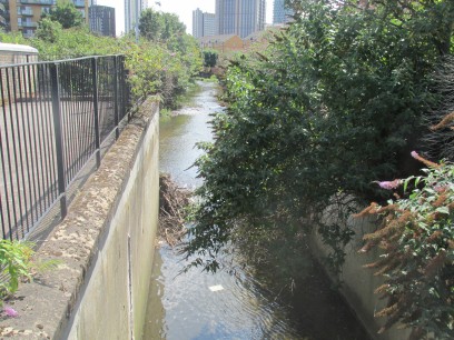 Here the Ravensbourne appears which will be followed in the next part of this walk. At this point it runs through deep concrete channels, an attempt to reduce flooding problems in the past, and seems not that much of a river. I walked along it for a couple of hundred metres before turning off down a short passage under the railway line. But now I was on the main road past Lewisham station so time to break for the day. Train to London Bridge where I had another nice lunch then a walk back to Waterloo along the south bank and the train back home. A really enjoyable day