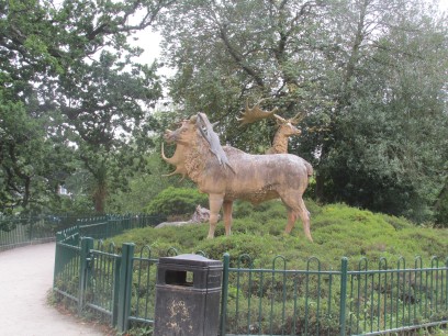 Now into the dinosaur park, designed by Waterhouse Hawkins and with scientific advice from Professor Richard Owen it opened in 1854. The Irish elks are fairly realistic but the dinosaurs look nothing like we now know they looked like. Plenty of things to keep the kids amused. Directions through the park were also fairly vague but no problem, follow the crowds.