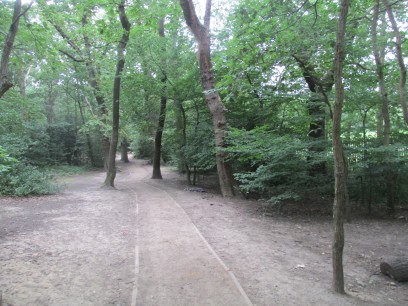 Immediately after the bridge the Green London Way diverts off the signposted Green Chain walk and takes the path to the right shown here. Rather than following a well signposted path heading to and joining Crescent Wood Road further along our route follows a maze of totally unsigned woodland paths around the edges of the golf club and Gun Site Allotments. The guide book kept saying 'keep ahead' but I still got confused and even after asking directions ended up coming out of a different exit on Grange Road, a narrow toll road. I managed to find where I was on the map but had to ask the chap manning the toll booth to confirm. Then a half mile diversion through Dulwich College along College Road to reach Low Cross Wood Lane where I should have been in the first place.