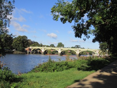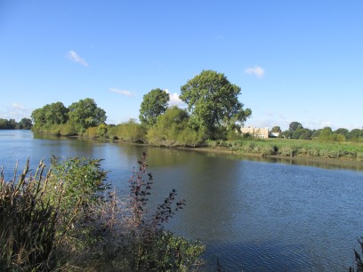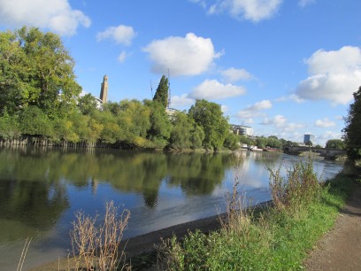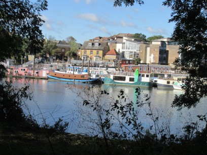 The path along the Thames was quite pleasant through light woodland and soon Isleworth and its marina came into view on the opposite bank together with its church.