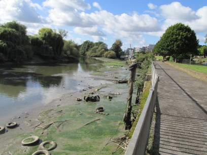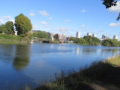 Now the estuary of the river Brent and Brentford dock come into view on the opposite bank and soon Kew bridge, which is the end of section 9.