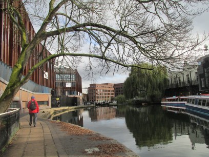 Starting from Camden Lock where I had finished last week (ignoring the instruction in the TFL directions to turn left out of Camden Town tube station which was completely the wrong way) we set off along the Regents Canal. Lots of locks and basins along this stretch with plenty of berthed boats but little actual traffic on the canal. We pass to the north of St Pancras and Kings Cross stations, both stations are visible in the photo. Quite a lot of new development going on here including the new Kings Cross estate which featured recently in the news with its cameras.