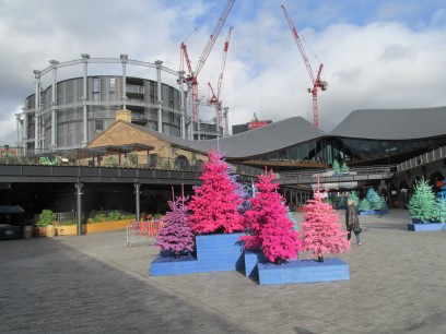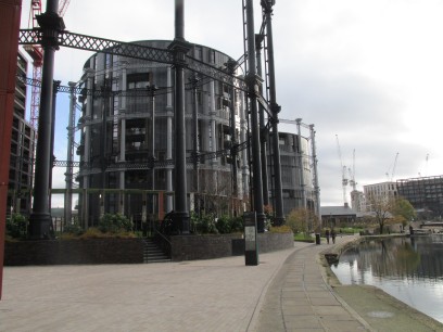 An interesting housing development built within the old gasholders. Then a development of shops nearby.