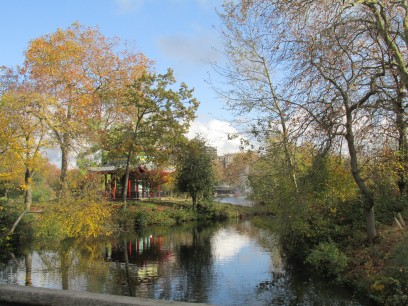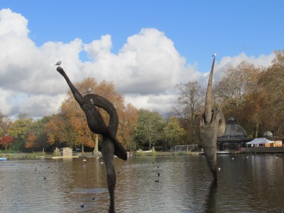 After quite a long stretch of the canal we reach Victoria Park in Tower Hamlets which is the end of section 3. Section 4 of the walk passes through here but we made a short diversion to have a look. Opened by Queen Victoria in 1845 it is as you can see quite impressive with a pagoda, lake with fountains and some strange sculptures called 'bird' and 'man' - I couldn't work them out either.