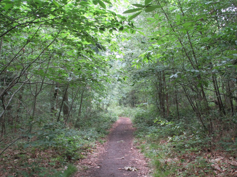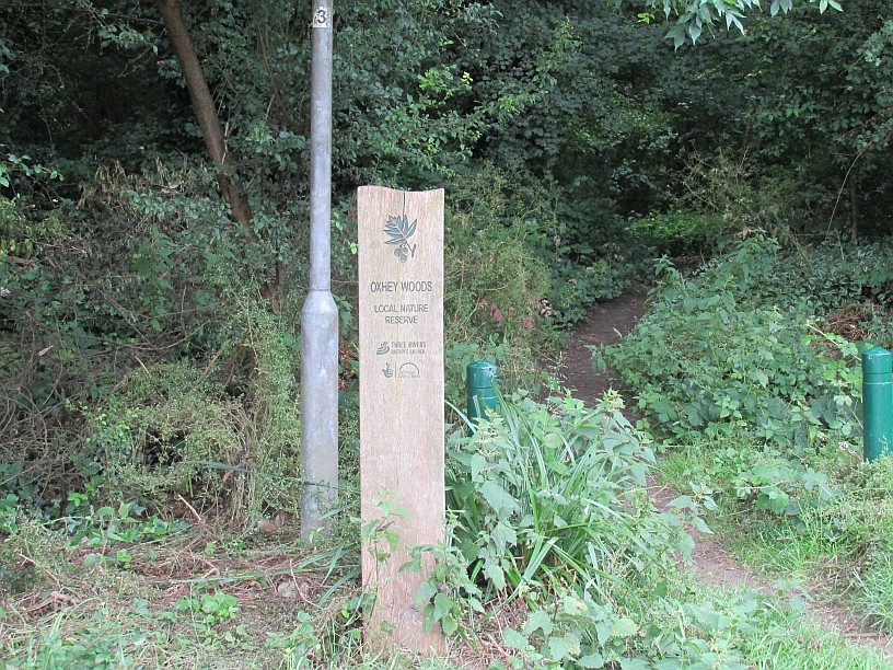 After the golf course I passed down a couple of roads to reach an 'almost hidden path' and so it was. I walked down the road past this innocent gap in the hedge twice before spotting it. Once through the path was actually quite decent and passing the so called Big Wood reached South Oxhey playing fields and further on Oxhey Woods which formed quite a long stretch of the walk.