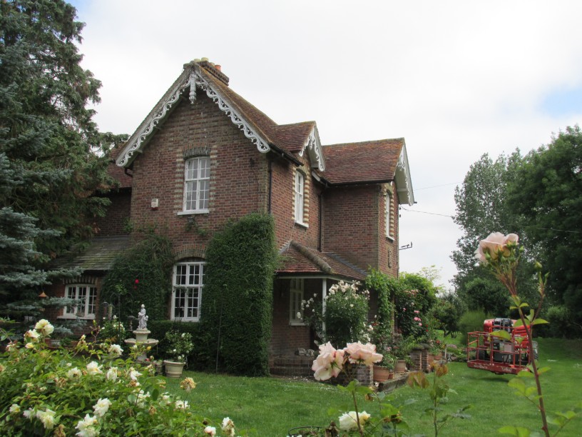 There then follows a stretch through farm fields with inquisitive horses where I had to watch where I stepped. At one of the stiles one particularly curious horse was standing right by the stile I needed to cross so a few gently pats were needed before she moved away. This is Pinnerwood Farm house and close by Pinnerwood Cottage and Pinnerwood House where the 10th century author Edward Bulwer-Lytton lived. The guidebook showed a lovely photo of that house but mine was most disappointing because the trees were now in their summer glory and blocked everything from view.
