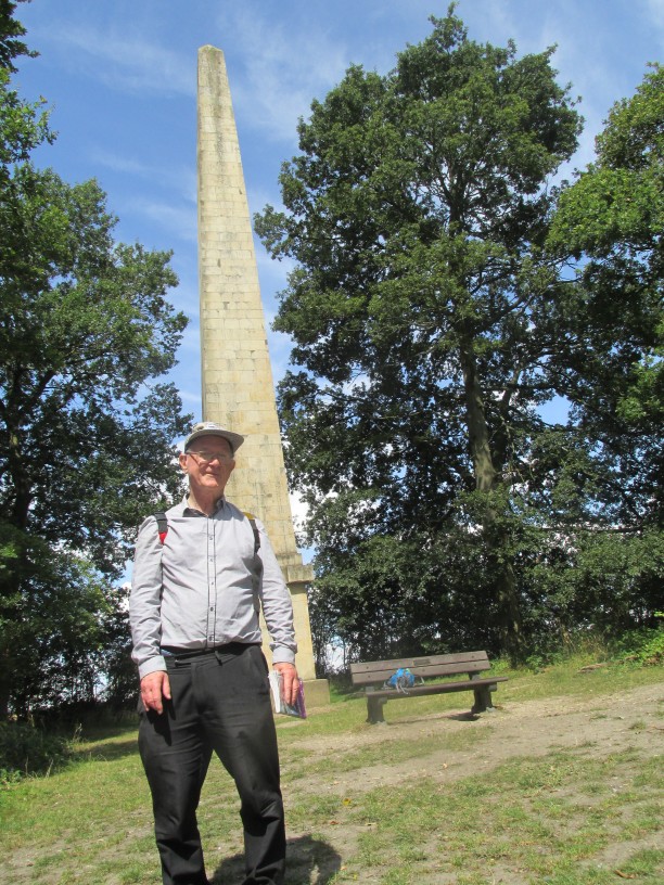 Then the second of the obelisks, the much bigger one which I had earlier photographed on zoom down the hill. A friendly chap offered to take a photo of me by it and then told me that the once owner of Trent Park mansion (now owned by Middlesex University) at the bottom of the hill insisted that all the trees had to be kept pruned so that he could see the obelisk when he drew his curtains in the morning. Indeed there was an excellent view of the mansion from there.