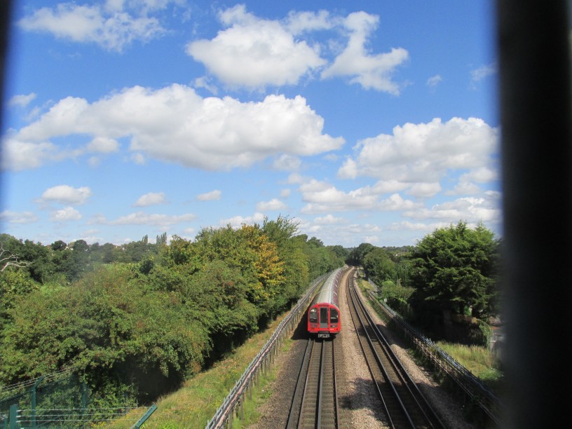 After this there was a trudge of the best part of a mile along the busy B170 where apart from one place with a good view of the Shard and central London was of no interest. A short chat to a couple of workmen feeding fibre optic cable down a hole in the ground was the only bright spot, I don't think they understood why anybody would do a 150 mile walk. Then into Chigwell itself, which seems to have more mini roundabouts than Bracknell, and lunch in a convenient 'gastro pub' finished the day. Off to Chigwell underground on the other half of the Hainhault Loop where I had to take a train to Woodford to pick up the one back to central London. Chigwell is the second least busy station on the whole of the tube network, only Grange Hill down the line (with no posh secondary school) is quieter. Back to Waterloo then home at around 5pm.