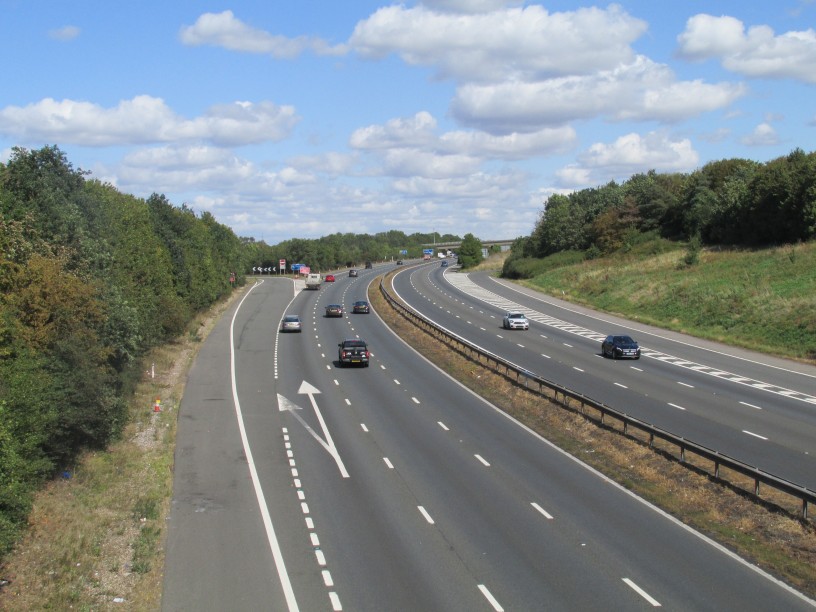 The M11 itself, the last of the major roads I will be crossing on the Loop. The slip road to the left was intended to go to the planned Chigwell services which were never built. If you look at the map you can see the complete outline of that service station. The exit is now just a works exit with a big no entry sign at it.