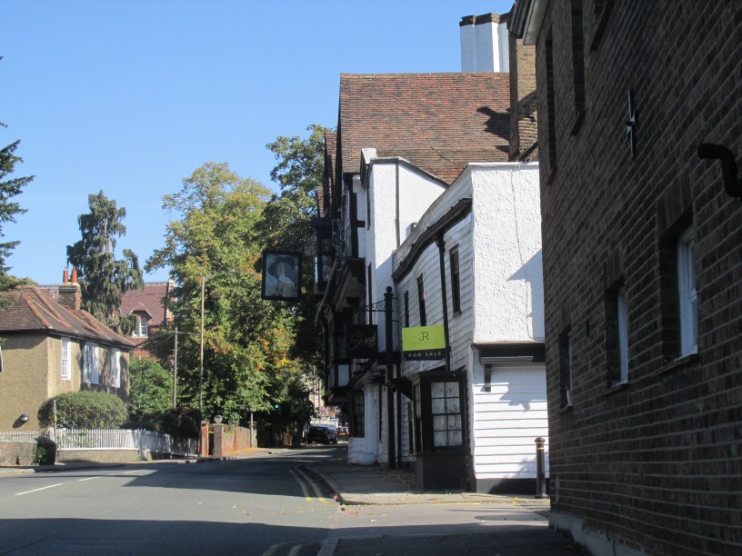 The first few hundred yards was along the main road through Chigwell out of its new part into the much older upper Chigwell. Just before we turned off is what used to be Ye Old Kings Head and was built in 1547. It featured as the Maypole Inn in Dicken's Barnaby Rudge. It is now a Turkish restaurant. Not a good photo but the road was busy with traffic so didn't cross. Opposite was the church and nearby Chigwell Hall.