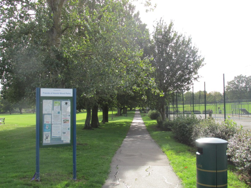 The start of the walk was through Harold Wood Park, a quite pleasant small park with tennis courts, a cricket pitch and kiddies playground. The sports pavilion is sometimes open to the public with a cafe but today it seemed occupied by a nursery school.