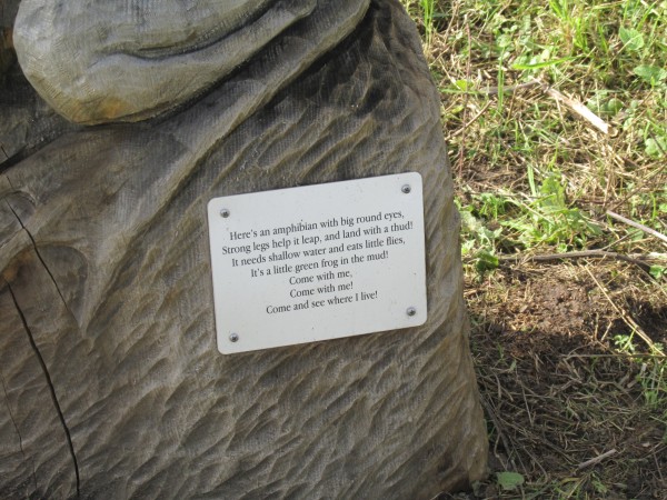 At various places in the wood are wooden sculptures of animals with information boards, all part of a nature trail.