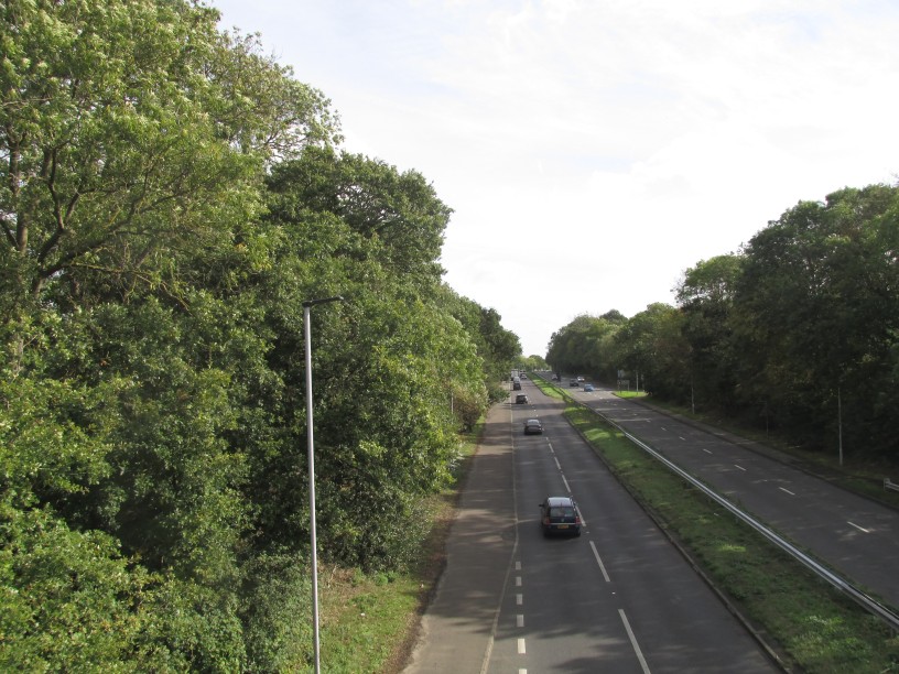 After this lovely stretch of new woodland I reached civilisation again, hitting the busy Hall Lane (with a short detour on a parallel residential road). I thought I had crossed all the main arterial roads on the loop but here is another, the A127 Southend Arterial Road, which Hall Lane does a big detour over via a bridge. The Loop path even goes right over one of the exit slip roads. A tedious trek of a mile or so along Hall Lane before turning off across a mini roundabout into peace and quiet.