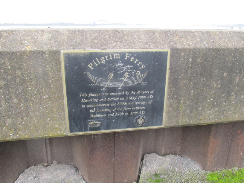 A plaque celebrating the Pilgrim Ferry which for many years used to ply across the river between Rainham and Erith. Not sure if the plaque is actually at the point the ferry departed as the pier at Erith on the other side is quite a bit further down. This is the missing link which could have made the London Loop a real loop.