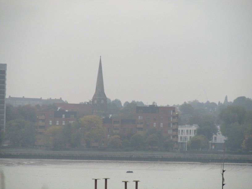 The church of St John the Baptist in Erith across the river, close to where I started my Loop walk back in February.