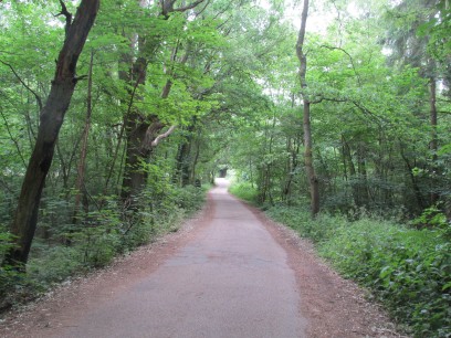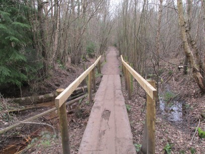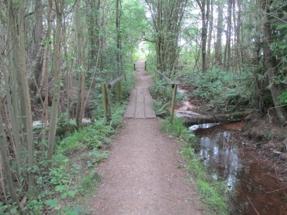 More forest, passed by a cyclist enjoying the day as well and then I cross a small stream via a wooden bridge just before the path exits from the woods for the final time.