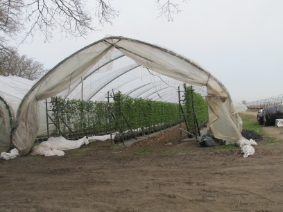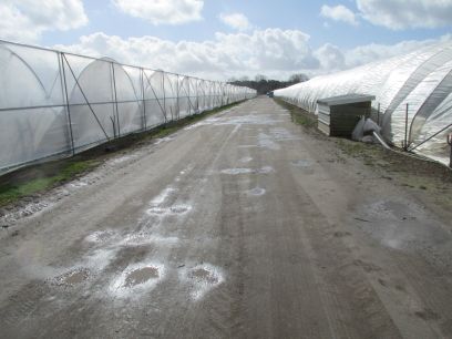 The path proceeded through the woodland and eventually out and through Grays Farm. The bridge over the stream has been repaired but still with bare wood so probably only temporarily. Still off season with the pick your own not opening until late April and many of the greenhouses empty. The area seems to have escaped plans for new building at least for now but at least part of it now seems to be under new ownership with Hall Hunter operating from nearby Heathlands Farm.
