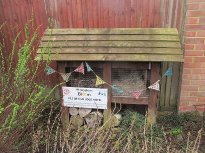From the station I made my way to the bridge over the railway line and for convenience walked along Gipsy Lane, a narrow road with some quite old houses. Half way along was the 'Pile of Old Logs Hotel' which was quite cute. Then over the railway into the woodland and Luckley Path which was quite muddy after the recent rain.