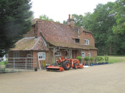 The walk now enters real woodland in an area of land managed by the forestry commission with pines and other trees. Quite a few others having walks, mainly women, and the occasional cyclist. The route here runs parallel to the Wokingham to Guildford railway line and normally I hear one or two trains but with the reduced service on that line there were none. Eventually we reach Gorrick Cottage, another pleasant little house, spoilt by that tractor outside. I turned off just after here deeper into the forest.