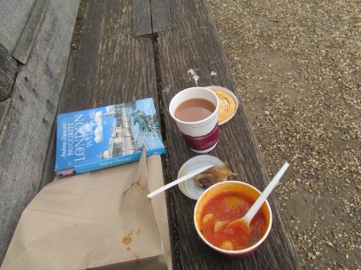 So down to Ham House where I arrived a few minutes before my booked 11.30am slot. With the house still closed it was relatively quiet and the sign outside said that they were taking walk in visitors. I had seen Ham many times now so I just had a quick walk around the grounds. The kitchen garden had been well worked on and new crops planted. Some of the grounds were still a little unkempt but by and large it looked a lot better than last summer. Lunch from the cafe is take away only and with the outside eating area removed I had to find a spare bench some distance away. The makeshift dinner table did the job and the Italian sausage casserole tasted good. I didn't find the roll and butter in the bag till later, trying to butter it outside in the stiff wind was not the easiest of things to do...