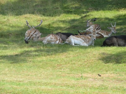 Now down the steep slope to Petersham, passing Sudbrook Park Golf Club and a lovely group of young deer. Out of the park there is a short section along busy roads then past the Deutsche Schuele and Ham Polo Club (closed but some horse riders on the bridleway outside) down to Ham House itself.