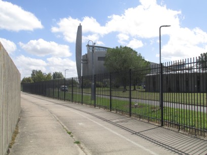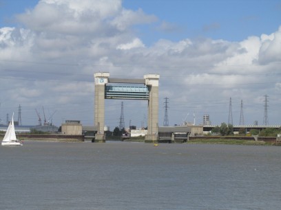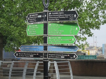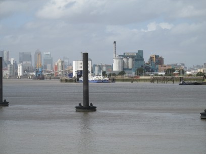 The walk starts by going past Woolwich Arsenal but not that much is visible from the river. The whole stretch is hardly that scenic being mainly industrial. But there were good views back to Canary Wharf and the Post Office Tower could just be made out. A short stretch of the riverside path is on gravel path through light woodland which gave it a rural feel. Eventually the flood barrier guarding Barking Creek comes into view and we reach Tripcock Ness but that was so insignificant that I failed to realise I had reached it until I saw a sign saying it was 100m further back.