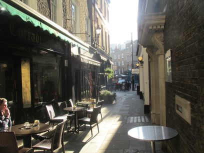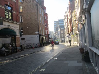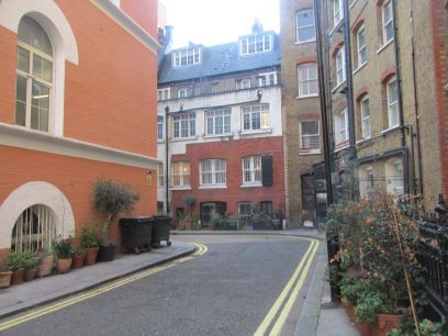 From the low point at the bottom of Bourdon Street a diversion is necessary via Berkley Square then the river route is picked up again on Bruton Lane and then the pedestrian Lansdowne Road. This leads down to Shepherd Market, originally on the river bank then away from the river along Down Street. The guide book mentions the now closed Down Street Underground station but this is actually further along and not passed as the route turns into Brick Street and picks up the river again just before Picadilly.
