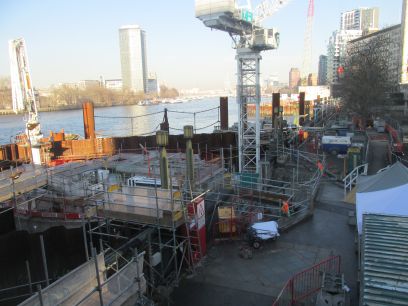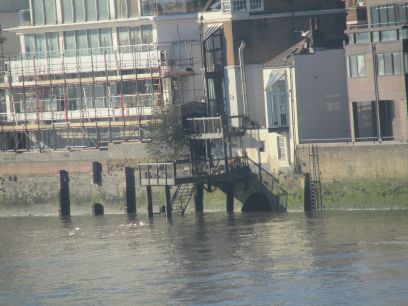 The Thames is reached at Crown Reach Riverside walk. The book claims you can see the outlet by straining over the parapet, or ciimbing down the stairs to the beach area at low tide but that is only for the brave and certainly not at high tide as was the case now. It suggested the best view was from Battersea Gardens on the south bank but work on the Nine Elms housing estate made that inaccessible as well. But a quite good view was possible from Vauxhall Bridge.