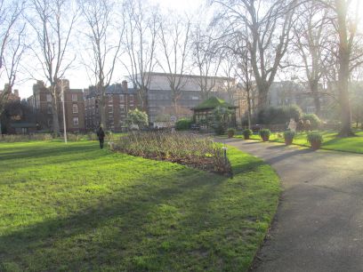 We pick up the river at Baker Street tube station and the busy metropolis. I gather the culverted river is visible just inside the tunnel at the Metropolitan Line platform. The route through Paddington Street Gardens, a former burial ground now sanctified by the church as a public park.