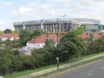 The logo of the Duke's River which includes another kingfisher. I was on the lookout for these beautiful birds and may well have seen three of them. First two of them together but with green rather than blue plumage which promptly disappeared under the foliage and refused to come out for me to photograph them. Then a little later one flew with a flash straight in front of me before disappearing, just its characteristic sing song somewhere in the trees. I may or may not have seen the elusive kingfisher! Then the large stadium of Twickenham Stoop, home of the Harlequins, comes into view