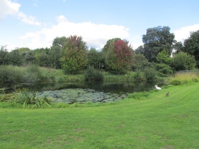 There is a formal garden but most of the grounds are parkland and woodland around a large pond.
