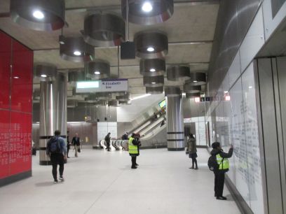 Armed with a one day Travelcard, fully accepted on the new line out to the zone 6 boundary I arrived at Waterloo on time just after 10am. The most sensible place to pick up the Elizabeth from there is at Tottenham Court Road so ventured up the Northern line and then into the newly opened parts. What strikes you immediately is how spacious it all is, none of the confined corridors of the old lines, and of course the newness of it. Though some of the interchange routes to the other lines are quite lengthy those at Tottenham Court Road from the Northern are not too bad.