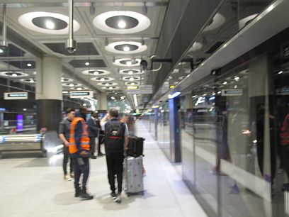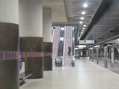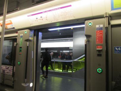 The Elizabeth line trains are 9 coaches so the platforms are surprisingly long and there is a lot of debate at what carriage you should join to minimise your walk at the other end. It also means that while some carriages are full others are almost empty. As my train came in I noticed a few sparsely occupied ones, but the one I got on was pretty full. Off we go, the acceleration and speed of the trains is very noticeable and I was soon on my way to Woolwich. I didn't care too much for the yellow lighting they have put along the escalators at Canary Wharf but expect others like this little touch.